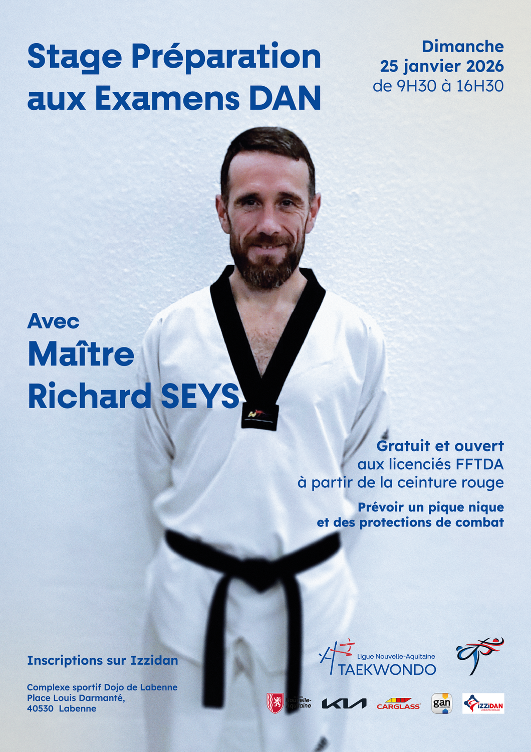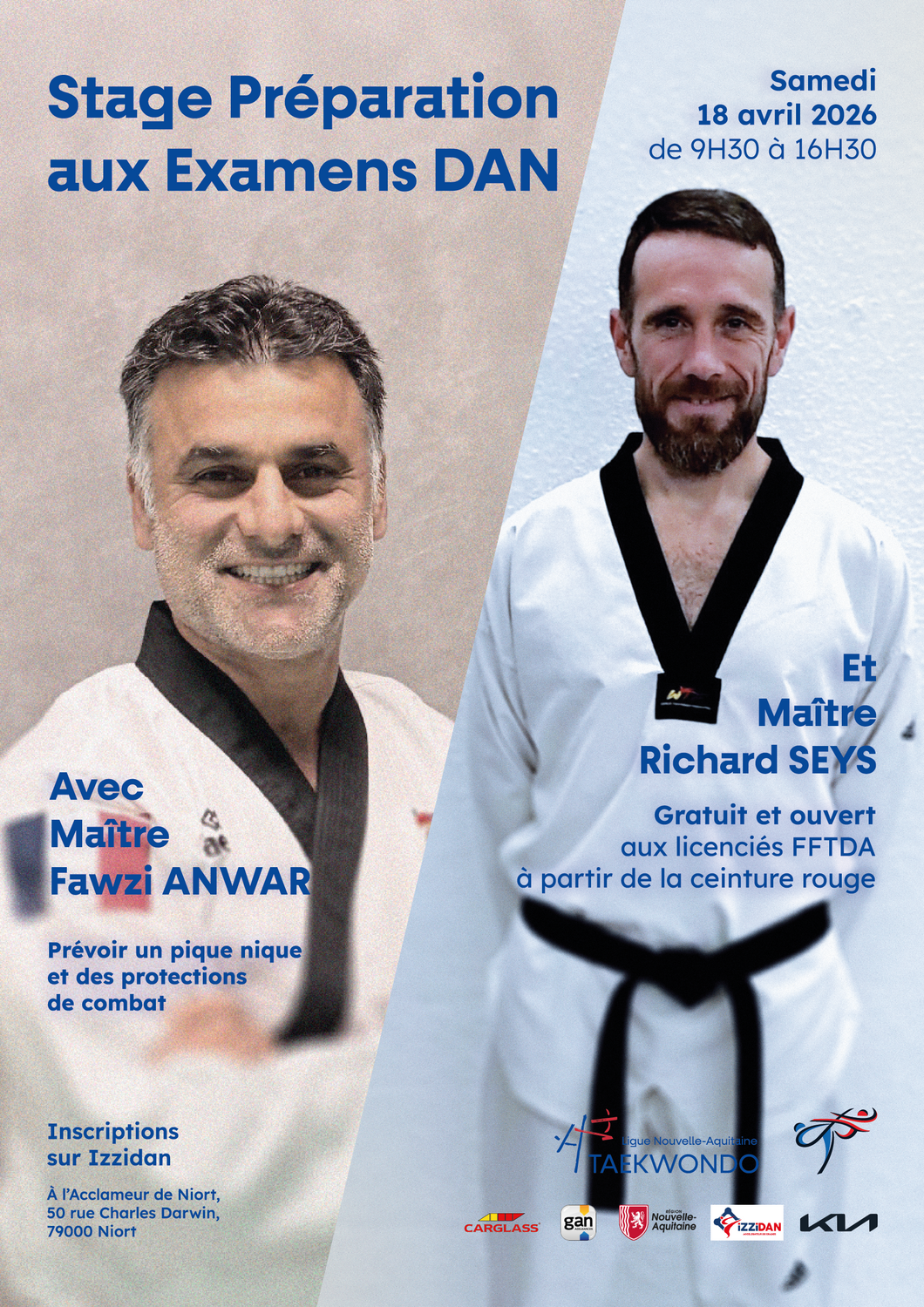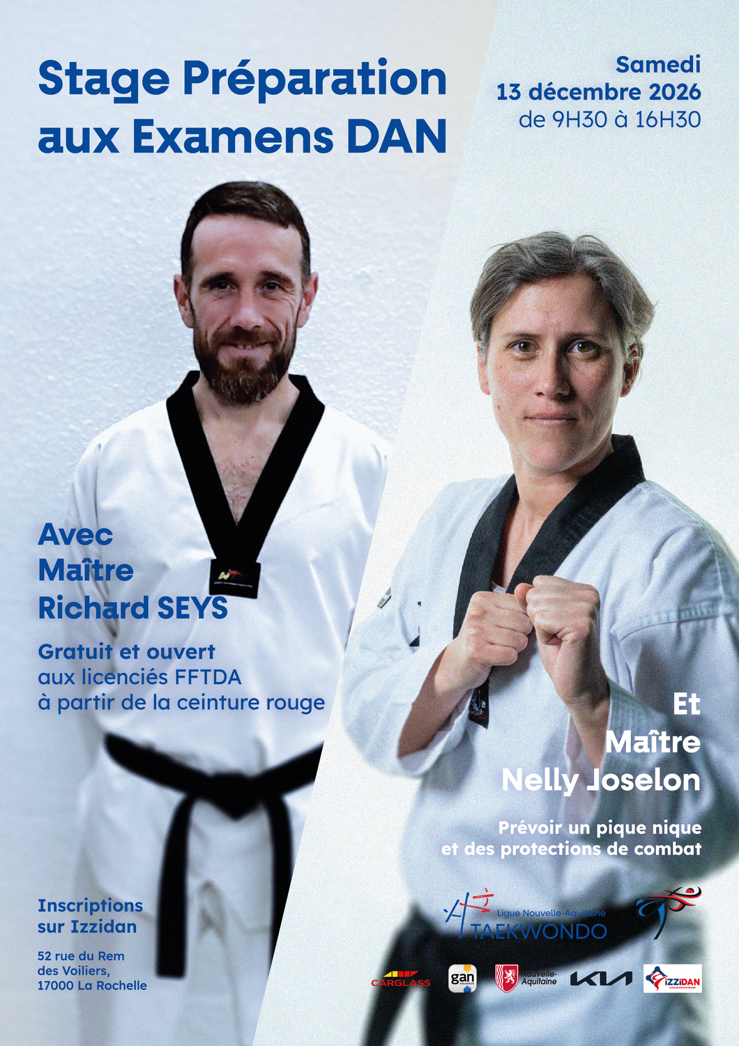 Pour info : 12H00 de stage de préparation sont obligatoires pour les passages de DAN dont 6H00 minimum pendant la saison en cours.